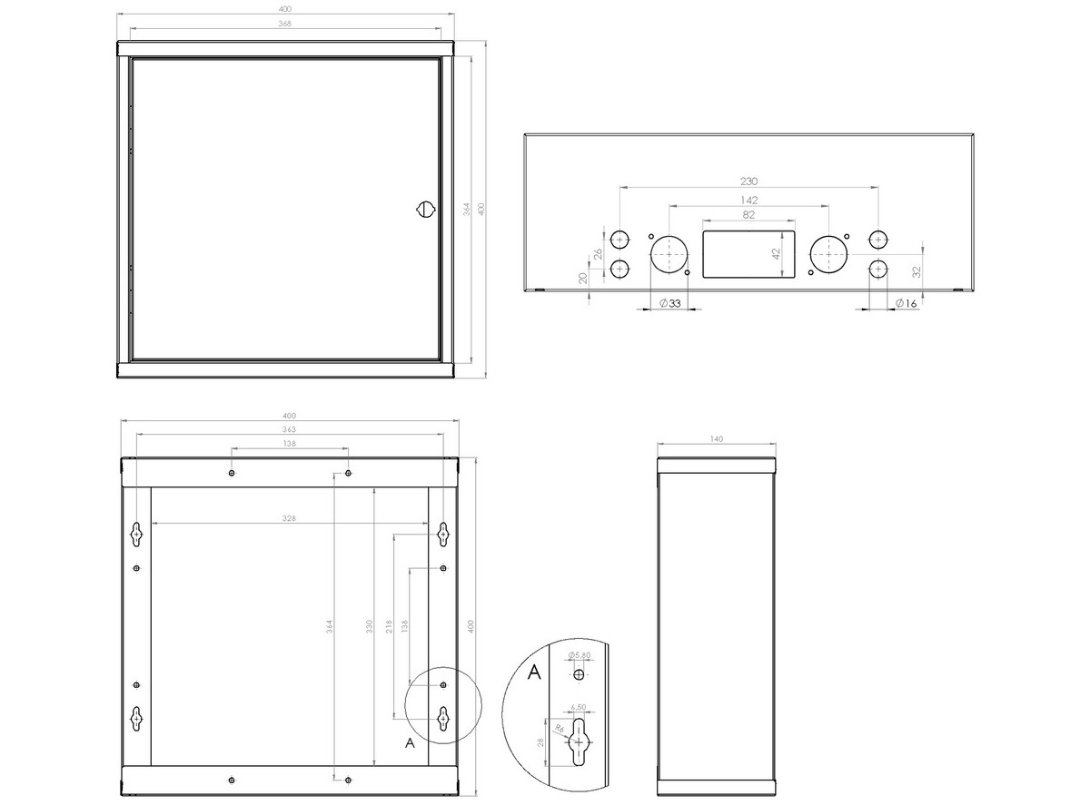 Niewątpliwą zaletą obudów produkcji Spacetronik są łatwe do wyłamania w ich dolnej i górnej części otwory na okablowanie, co zapewnia wygodną instalację okablowania i prawidłowy montaż urządzenia.
