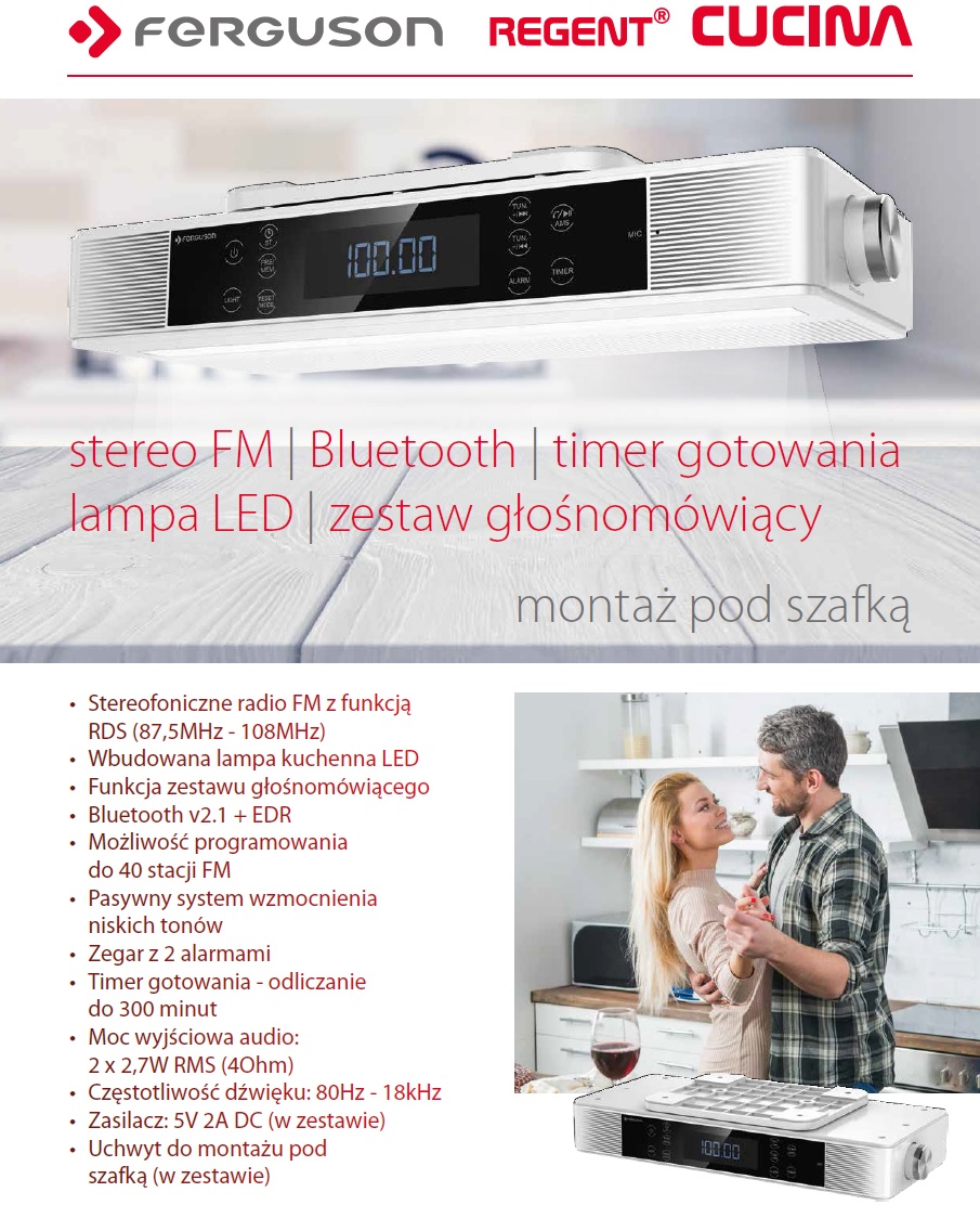 Radio podszafkowe FM z Bluetooth Ferguson Regent Cucina - Białe