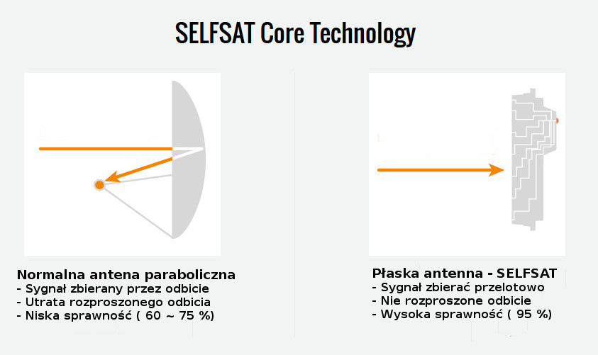 Wysokiej jakości mała płaska antena satelitarna marki SELFSAT model H22D4 z wymiennym LNB. Antenę stosujemy w miejscach gdzie nie można zainstalować standardowej anteny satelitarnych. Zaletą anteny jest łatwa instalacja dobra jakość sygnału, może być zamontowana praktycznie wszędzie. Antena jest mała gabarytowo więc można ją zabrać w podróż lub na camping. Idealna do odbioru telewizji SD jak i HD choć przy gorszej pogodzie mogą wystąpić problemy z odbiorem kanałów w jakości HD wtedy zalecamy mocniejszą antenę H30 lub H50. Niestety nie ma możliwości instalacji we wnętrzu budynku lub apartamentu czy też za szklaną szybą.