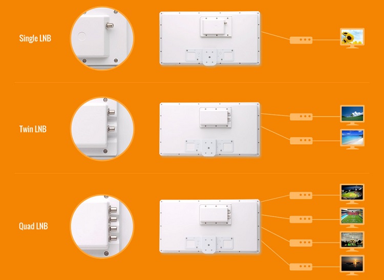 Dzięki zastosowaniu technologii wymiennego LNB możesz bezproblemowo oglądać sygnał z jednej anteny nawet na 4 odbiornikach!