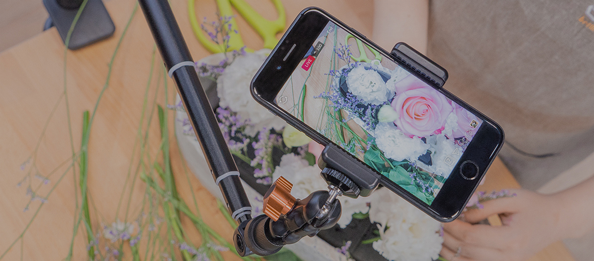 Oprócz standardowego gwintu 1,4" do mocowania kamer, w zestawie jest też uchwyt do montażu telefonu. Statyw można dowolnie ustawiać, wydłużać, wyginać itp.: