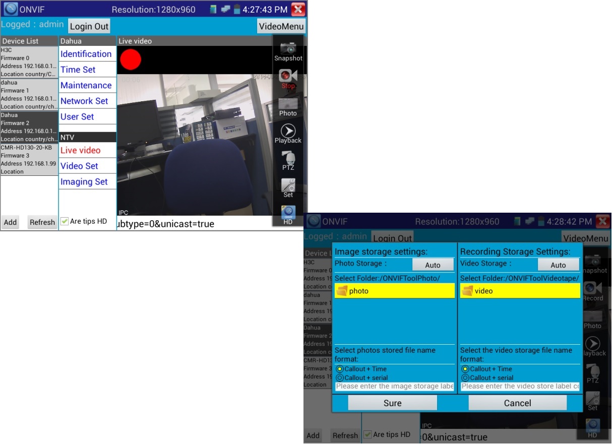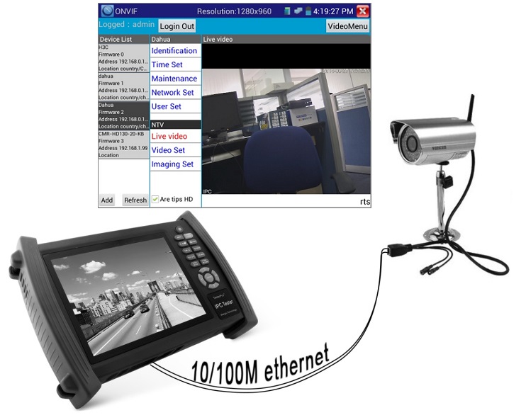Tester obsługuje protokół ONViF, co pozwoli nam na podgląd i konfigurację kamer IP oraz PTZ IP. Kamerę możemy bezpośrednio podpiąć do testera, lub po wcześniejszym skonfigurowaniu sieci lokalnej w urządzeniu, podpiąć się pod sieć i wyszukać kamer. Dzięki SP-IPTL07AiO4K, mamy dotęp do wszystkich możliwych ustawień kamer IP i ich konfiguracji. Mamy możliwość podglądu bezpośrednio z przeglądarki, gdyż urządzenie posiada zaisntalowaną przeglądarkę www.
