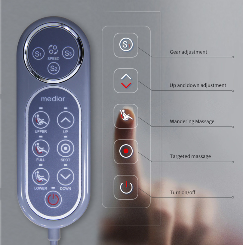 Panel sterowania umieszczony jest w wygodnie dostępnym miejscu, pozwala na łatwą zmianę trybów masażu.