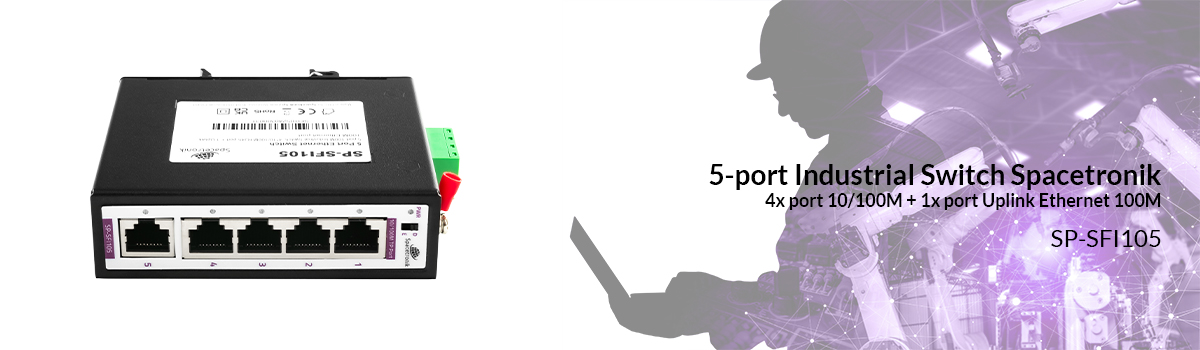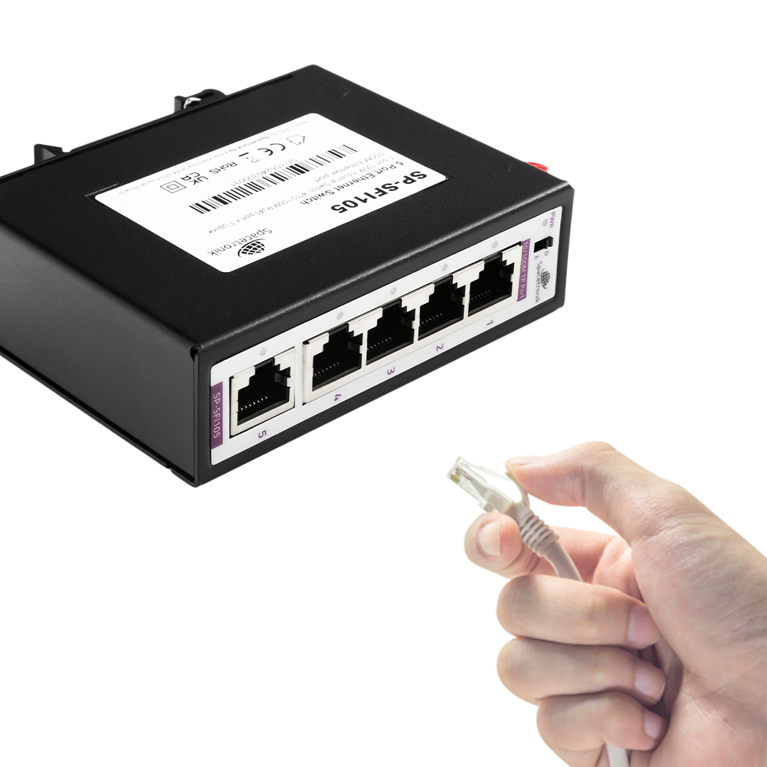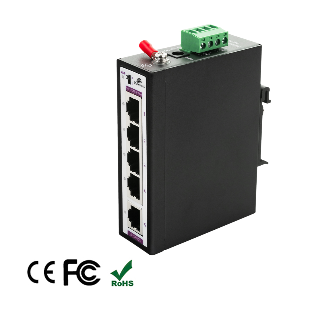 spacetronik 5-Port Industrie SWITCH 4x 10/100M Port + 1x Uplink Ethernet Port RJ45 100M SP-SFI105
