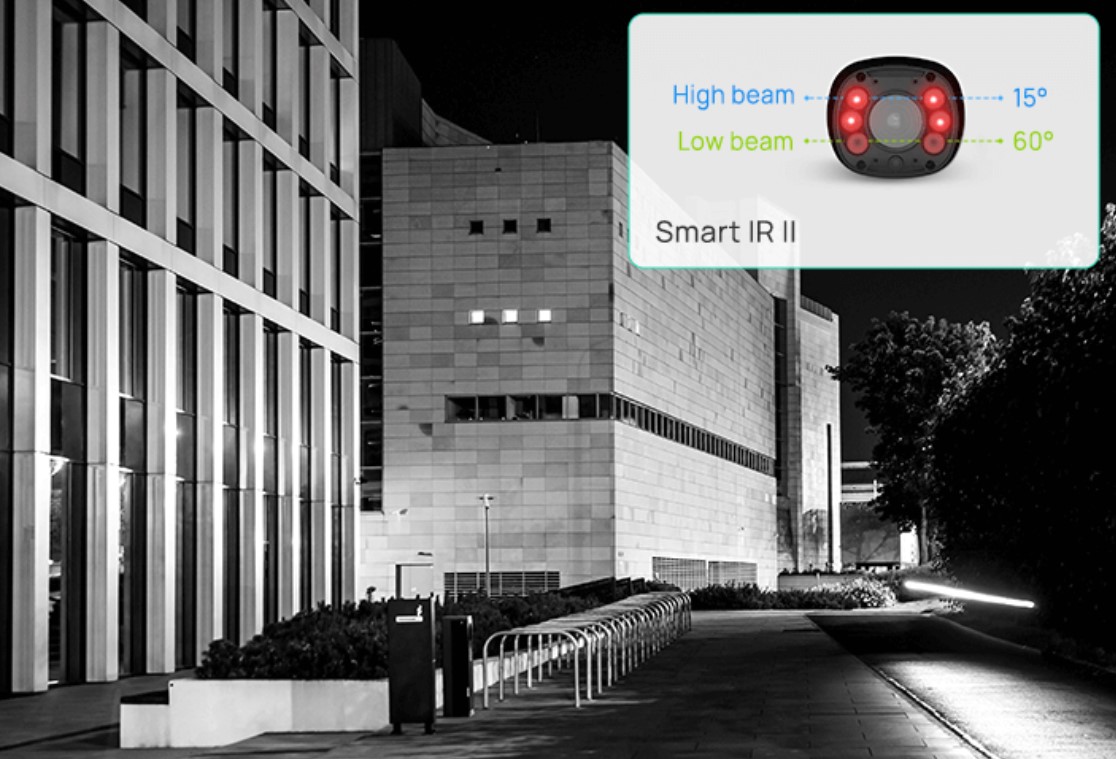 Die IR-LED-Technologie wurde verbessert, um eine Videoreichweite von bis zu 180 m zu erzielen und so die Bildqualität zu verbessern. Darüber hinaus können Sie die Helligkeit des Abblend- und Fernlichts manuell oder automatisch je nach Zoomfaktor einstellen.