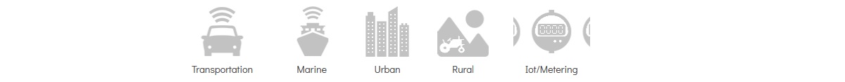 klimakontrolle, Zugangskontrolle, Sicherheit, Bewässerung - Industrielle Automatisierung, Robotik und andere M2M-Systeme- Digitale Beschilderung- Lager und Logistiksysteme- Verkehr (Busse, Versorgungsunternehmen und öffentliche Sicherheit)- Kommunikation, Telemetrie und Automatisierung von Bergbaufahrzeugen und -maschinen (M2M und IoT) - Landwirtschaftliche Maschinen- Maritim: kleine Boote, Yachten in Küstennähe oder in Binnengewässern