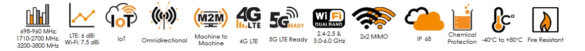 Hochleistungs-Mehrfrequenz-3-in-1-Antenne - 2G / 3G / 4G / LTE-Antenne (bereit für 5G)- LTE (2X2 MIMO), Dual-Band-Wi-Fi (SISO)) -Breitbandspektrum einschließlich3,5-GHz-CBRS-Band - unabhängig von der Grundfläche