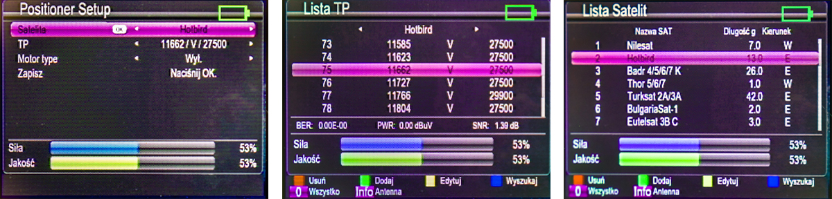 Transponder, darunter die beliebtesten: Hotbiord 13,0°O, Astra 19,2°O,