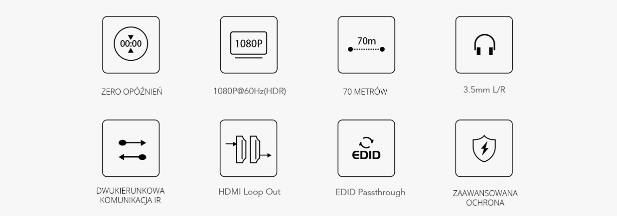 - Full HD 1080P@60Hz HDR-Übertragungsauflösung