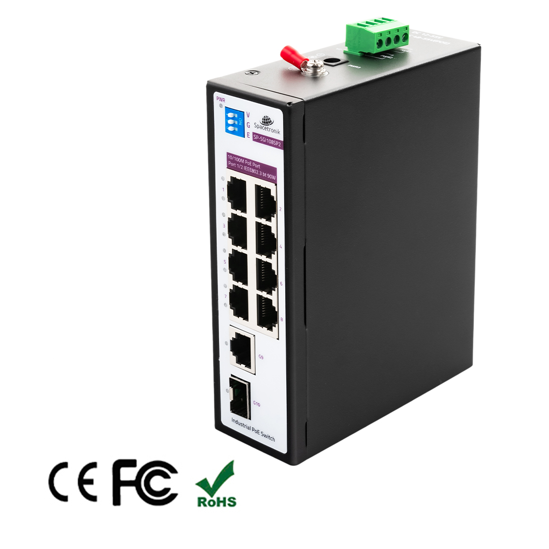 - 8*10/100M POE Ports (Port 1 und 2 unterstützen bis zu 90W bt) + 1*1G RJ45 Uplink Port + 1*1G SFP Port