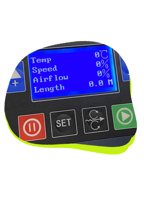 - Wielofunkcyjny panel z wyświetlaczem oraz ustawieniami prędkości, ilością powietrza i temperatury