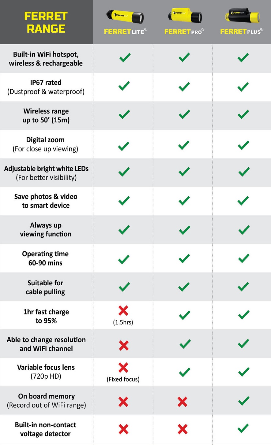 Ferret Lite CF-100 to zaprojektowana i skonstruowana przez Ferret Tools uniwersalna kamera inspekcyjna, która pozwala zobaczyć trudno dostępne miejsca na ekranie smartfona.