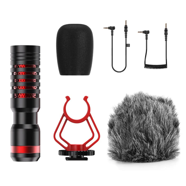 W zestawie z futrzaną szybą przednią dla redukcji szumów. Kompatybilna z iPhone'em, Androidem, aparatami fotograficznymi, kamerami, rejestratorami audio, tabletami, laptopami.