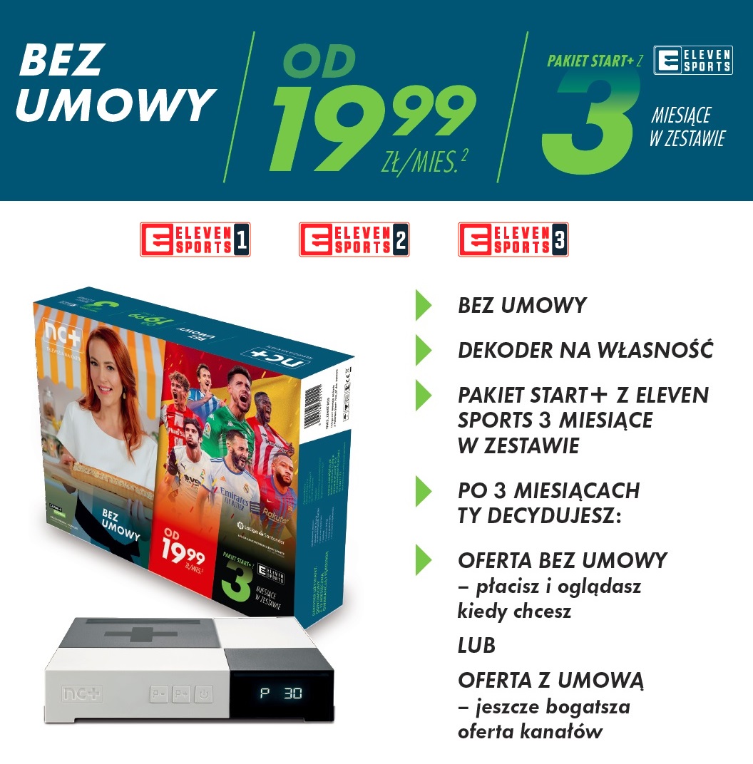 - podpisanie umowy na jedną z dedykowanych ofert abonamentowych NC+, z opcjami Canal+ czy HBO, w cenie od 29,90 zł/msc.