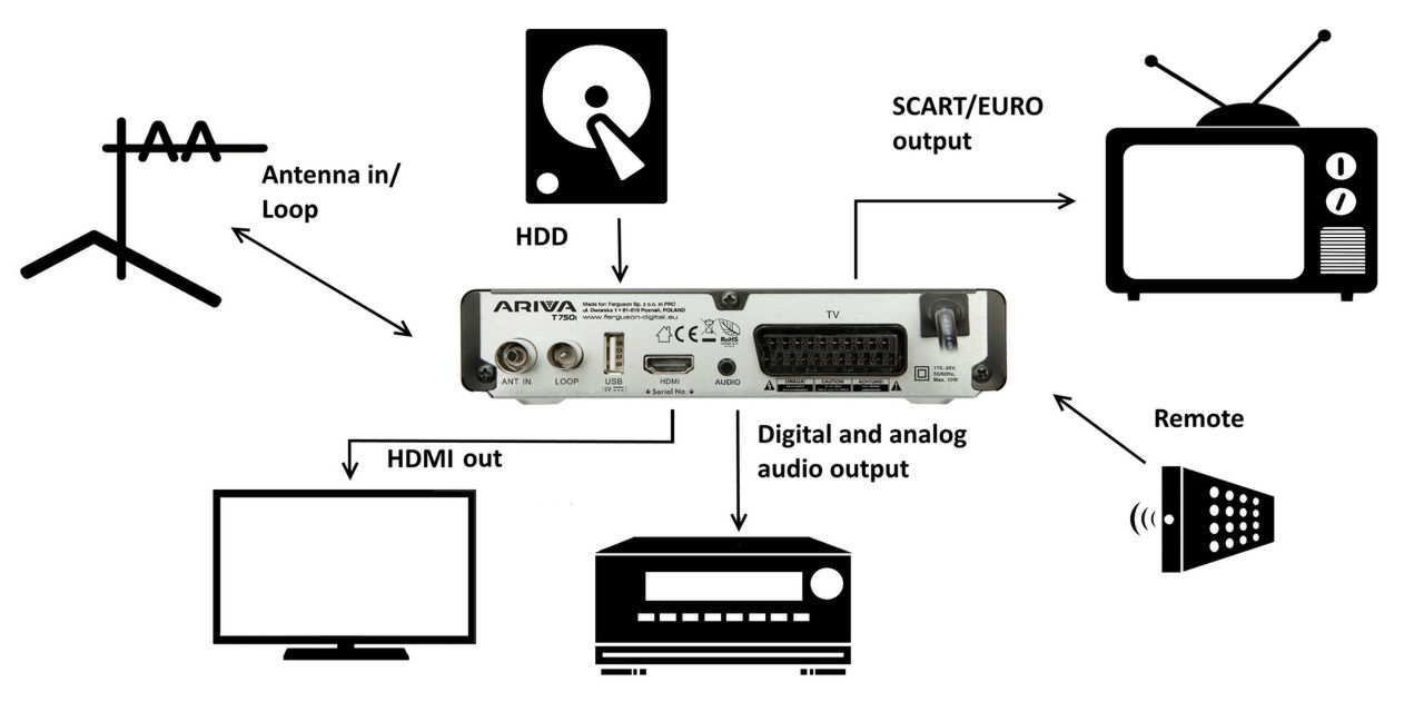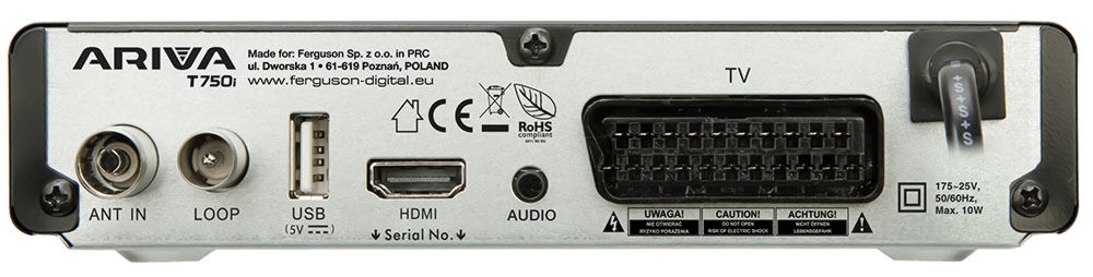 Odbiornik (popularnie określany jako "tuner" lub "dekoder STB") Ariva T750i obsługuje darmowe kanały nadawane w cyfrowej telewizji naziemnej w technologii MPEG-4 z dźwiękiem Dolby Digital Plus. Złącze USB z funkcją timeshift oraz obsługą multimediów, sprawia, że odbiornik stanowi domowe centrum multimedialnej rozrywki.