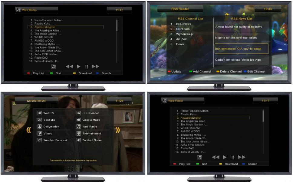 - Oddzielne listy kanałów ulubionych, TV i Radio