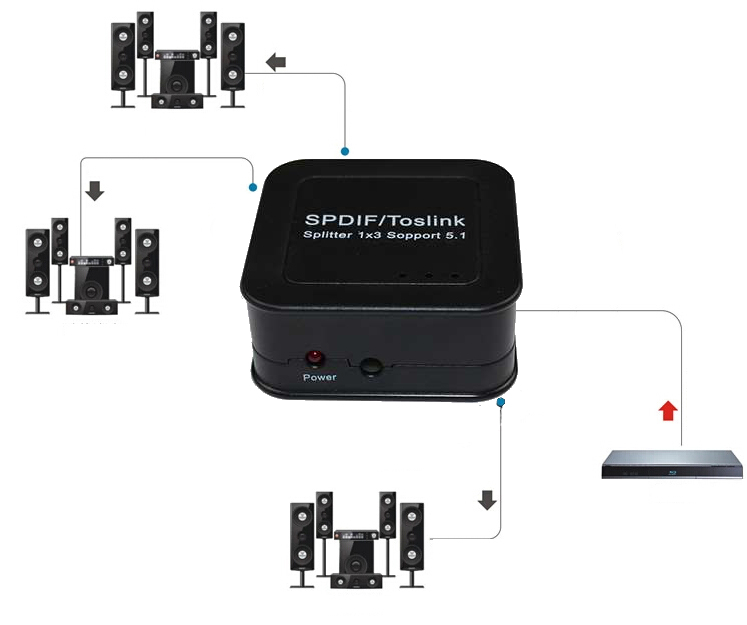 - podzial sygnału na trzy sygnały SPDIF / Toslink na wyjściu