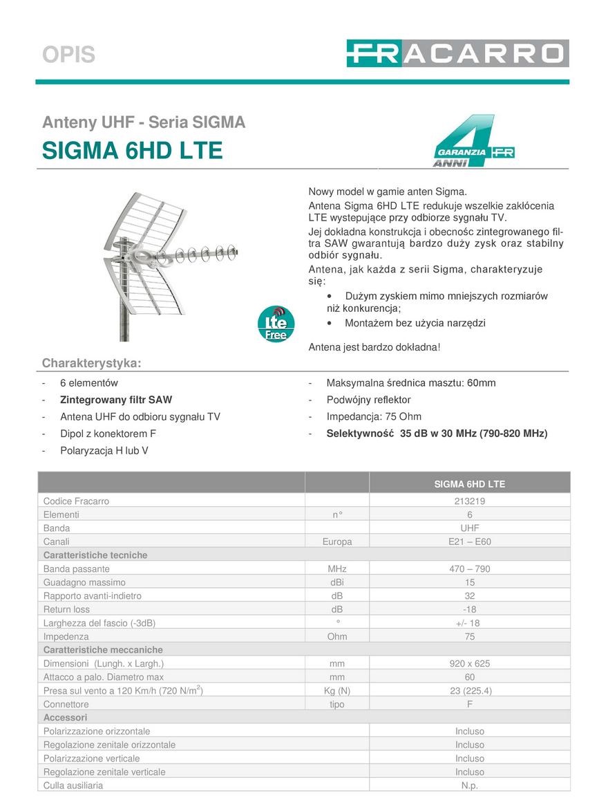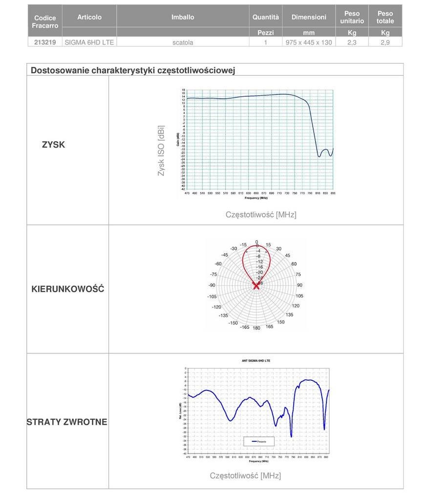 Anteny Sigma są dostarczane wstępnie zmontowane (elementy direktora, obejma masztu, wspornik reflektora oraz szyna elementu aktywnego są już zmontowane). Dlatego można je szybko i łatwo zainstalować bez żadnych narzędzi.