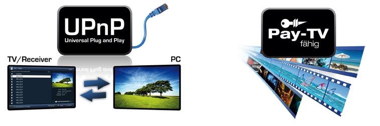 Zdjęcia, muzyka i filmy zapisane w pamięci dekodera TechniSat można (w obrębie zasięgu sieci WLAN) przeglądać na smartfonie lub tablecie. Można odtwarzać również nagrania, przy pomocy zainstalowanego media playera.