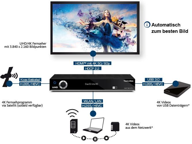 - Obsługiwana rozdzielczość do 4KUHD / treść 4K (HDMI z 4K 50 / 60p /HDCP 2.2 / H.265 / HEVC)- Triple tuner 3x Twin Tuner: 2x DVB-S2, DVB-C i DVB-T2- Model: 0100/4757