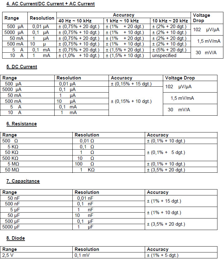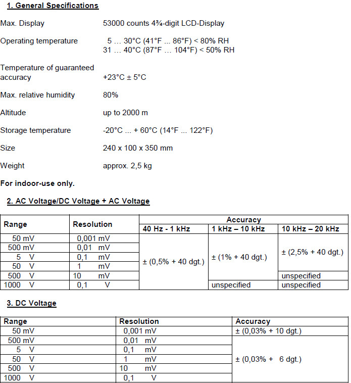 Wysoce precyzyjny laboratoryjny multimetr cyfrowy z interfejsem USB do transferu danych poprzez oprogramowanie PC i funkcją pomiaru wartości True RMS. W zestawie znajduje się oprogramowanie rejestratora danych przeznaczone dla systemów Microsoft Windows. Dodatkowo możliwość przesyłania danych i zdalnego sterowania urządzeniem poprzez RS232, USB, LAN. Pamięć wewnętrzna i rejestrator danych. Pomiar elektrycznych wartości, takich jak napięcie DC/AC, sygnał mieszany DC/AC RMS, a także rezystancja i pojemność Gniazda bezpieczeństwa 4 mm z przewodami pomiarowymi spełniającymi najnowszą normę, pomiar do 1000V i 10A. Zasilanie kablem zasilającym.