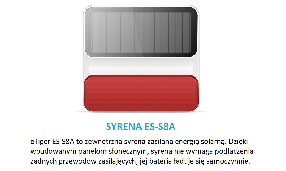 Syrena/alarm zewnętrzna solarna eTiger ES-S8A Bezprzewodowa