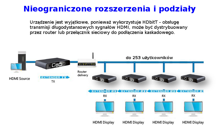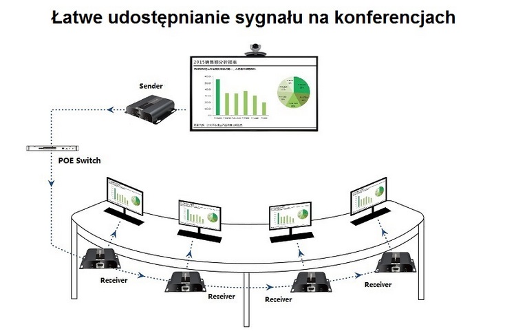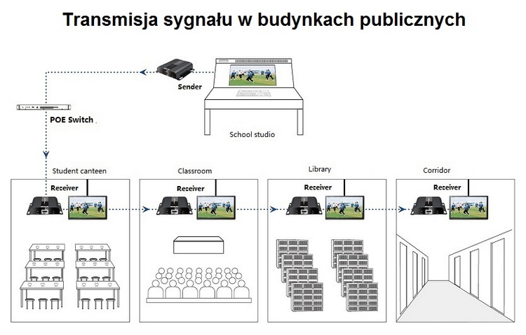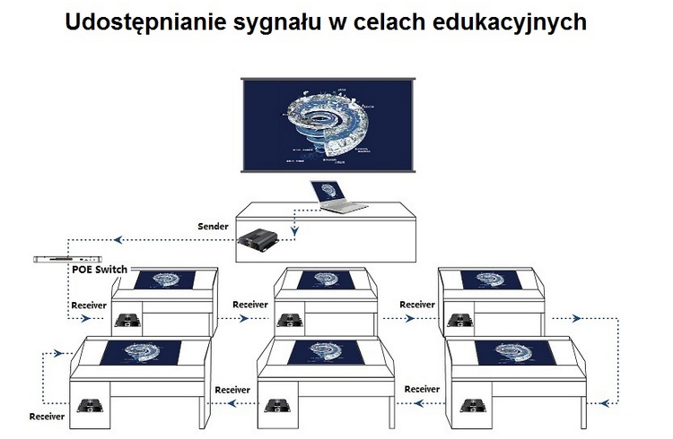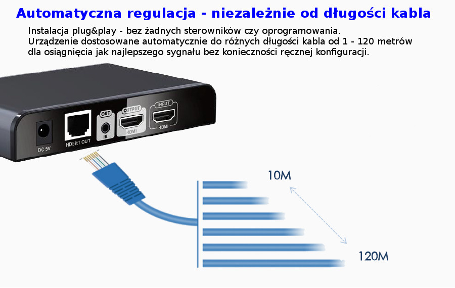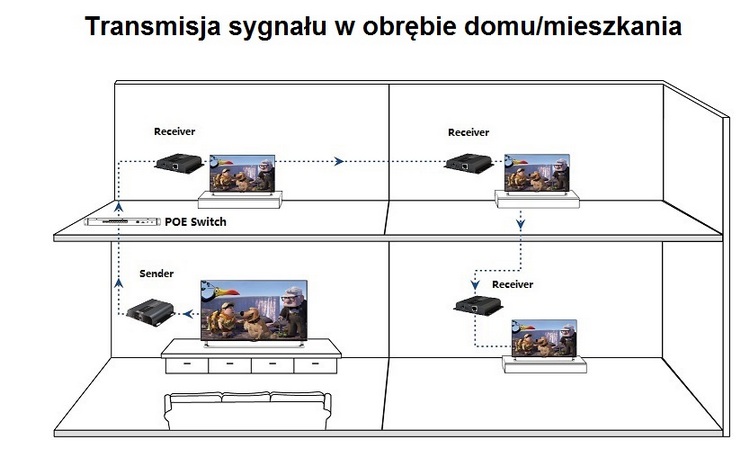 Urządzanie doskonale nadaje się do podłączenia tunera satelitarnego, odtwarzacza DVD, komputera czy konsoli do odbiornika oddalonego od urządzeń.