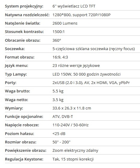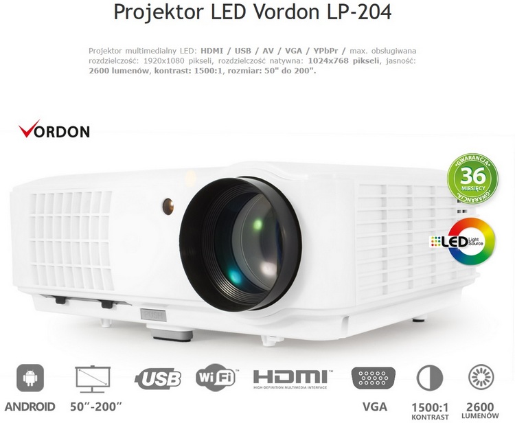 Projektor LED Vordon LP-204 2600lms 1024x768