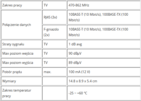 Switch EoC Net Class EMP-Centauri ES05-15 służy do zmiany sygnału internetowego z portu LAN na sygnał, który może być przekazywany dalej po kablu koncentrycznym, sygnał można dalej rozgałęziać za pomocą takich switchy. Obsługa sieci do 100 Mbps. Urządzenie wyposażone w 2 gniazda typu F oraz 3 gniazda typu RJ45. Do prawidłowego działania wymagany zasilacz 12V (brak w komplecie). Pełna zgodność przy współpracy z innymi urządzeniami serii Net Class (dostępne u nas).