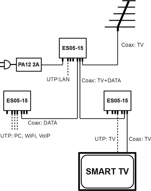 Switch EoC NET CLASS EMP-Centauri ES05-15 LAN na Coaxial