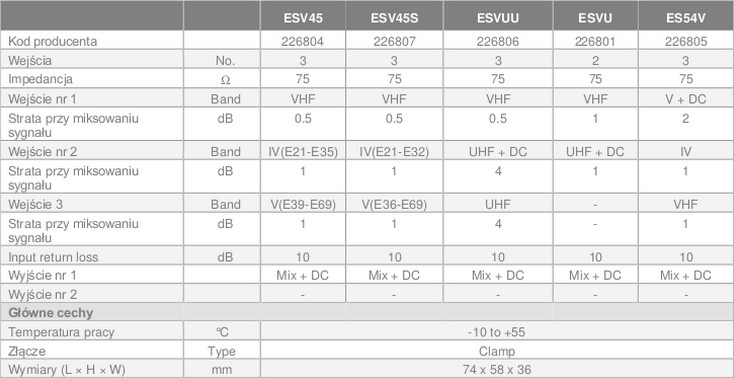 Seria sumatorów masztowych ES line to dwu- lub trzy- wejściowe sumatory masztowe , które sumują sygnał UHF i VHF wraz z podawaniem napięcia DC. Sumatory działają z impedancją 75Ohm czyli pracują ze wszystkimi instalacjami TV-SAT. Regulowana osłona plastikowa psuje na każdy maszt o średnicy do 60mm.