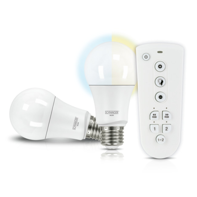 Nowoczesna zestaw żarówek LED firmy SCHWAIGER z technologią ZigBee tworzy niezwykłą atmosfere w pokoju ze względu na różne jasne kolory a także regulowane natężenie światła i temperature światła. Żarówke można po prostu wkręcić w standardowe gniazdo E27. Jest łatwo integrowana z siecią HOME4YOU i może być obsługiwane za pomocą aplikacji SCHWAIGER HOME lub za pomocą pilota zdalnego sterowania ZHF02.