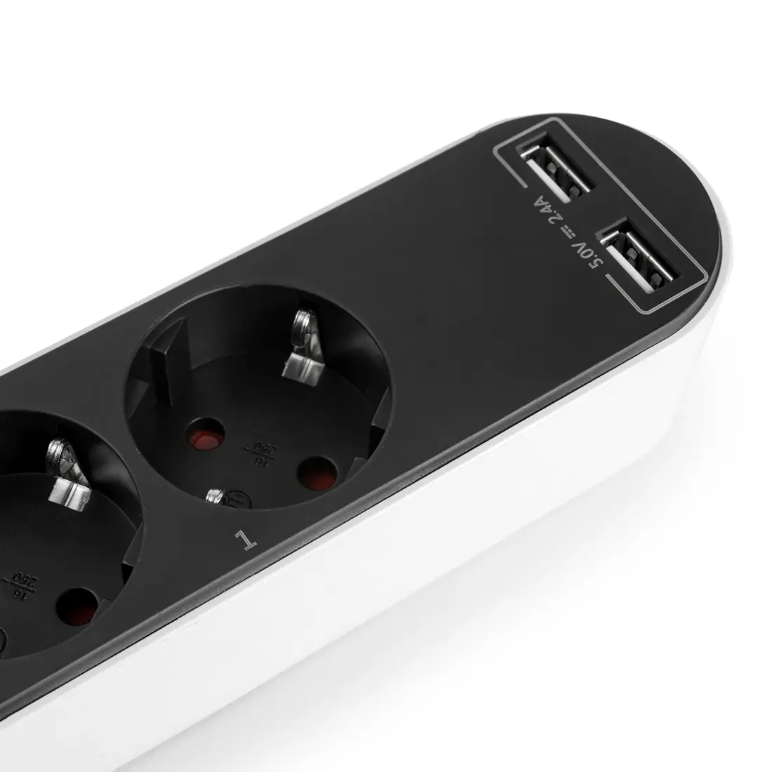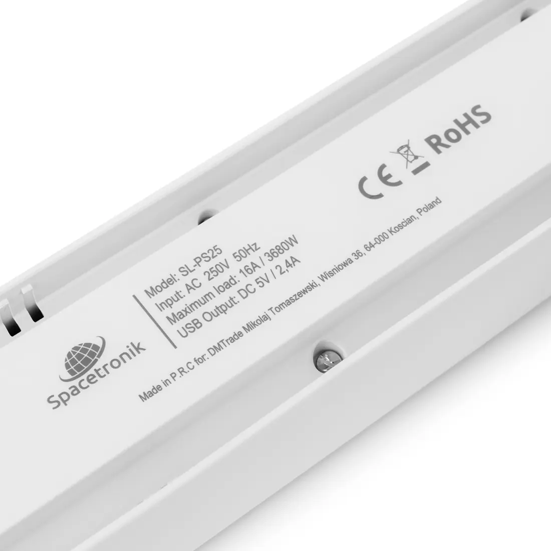 Listwa sieciowa WiFi SL-PS25 - ten model posiada trzy gniazda sieciowe Schuko i dwa gniazda USB 5V 2,4. Kabel ma długość 1,5m. Ciekawa jest tutaj obudowa- listwę możemy powiesić na śrubkach.
