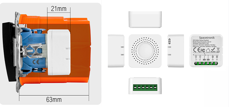 Inteligentne przełączniki przypominają te zwykłe. Montuje się je w puszce prądowej (takiej jak do gniazdka elektrycznego). Do wyboru mamy włączniki z przyciskami lub mini switch dopuszkowy bez przycisków, pozwalający na montaż naszych własnych, dotychczasowych włączników, czyniąc z nich oświetlenie smart.