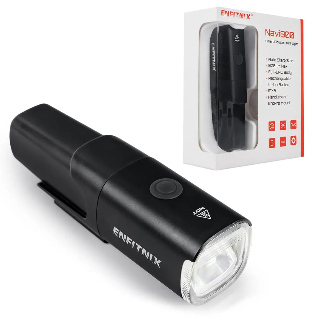 Lampka do roweru Navi800 została zaprojektowana tak, aby ułatwić Ci życie. Posiada czujniki do monitorowania tego, co dzieje się w danym czasie. Automatycznie uruchamia się i zatrzymuje. Lampka rowerowa jest w stanie dostarczyć do 800lm światła, które poprowadzi Cię ze szlaku na szlak i przez dojazdy do pracy w mieście. Zapewnia dobrą widoczność i bezpieczeństwo. Opatentowany sposób mocowania umożliwia łatwy montaż na kierownicy lub dowolnym wsporniku. Skrupulatnie zaprojektowany odbłyśnik zapewnia wyraźne cięcie światła, dzięki czemu Twoje światło nie oślepia innych.