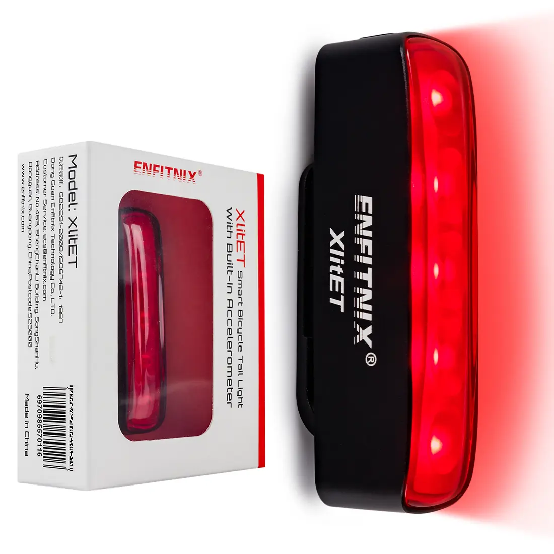 Tylna lampka rowerowa Enfitnix XlitET została zaprojektowana z myślą o codziennych dojazdach do pracy i długich trasach rowerowych, gdzie wymagana jest duża żywotność baterii i lepsza widoczność na drodze. Lampka posiada zintegrowany akcelerometr XlitET, który pozwala lampie wykryć, czy rower zwalnia, hamuje. Ulepszony 32-bitowy procesor ARM zapewnia szybszą reakcję na hamowanie. XlitET jest w stanie wykryć natężenie światła otoczenia i automatycznie zmienić jasność, aby zapewnić dobrą widoczność w dzień i w nocy.