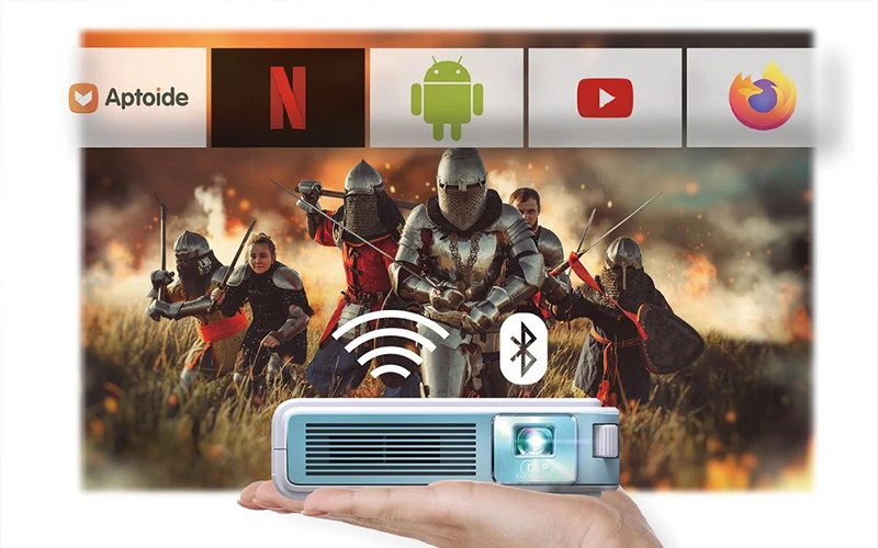 Wyposażony w dobrze już znany większości system Android 10, mały projektor DLP obsługuje popularne aplikacje do przesyłania strumieniowego takie jak na przykład Netflix, YouTube, Prime Video oraz inne serwisy. EZCast Beam J4a to jednak nie tylko filmy i seriale - z powodzeniem odtworzysz na projektorze zdjęcia i filmiki z wypraw, prezentacje czy materiały edukacyjne. Urządzenie umożliwi Ci pobieranie i odtwarzanie ulubionych aplikacji i gier w ciągu kilku sekund. Wszystko wyświetlisz za pomocą lampy o jasności aż 300 ANSI lms, która pozwoli na wygodne oglądanie obrazu zarówno w pomieszeniu jak i w plenerze.