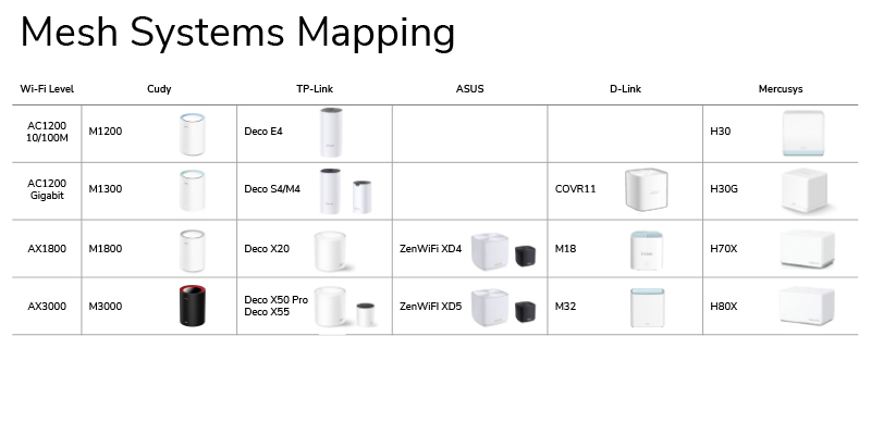 Routery w technologii MESH - porównanie modeli marki CUDY z markami TP-LINK, D-Link, ASUS, Mercusys
