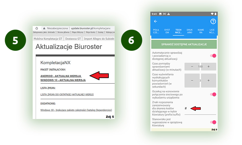 Aby skonfigurować urządzenie z tą aplikacją Biuroster, należy pobrać plik instalacyjny KompletacjaXN dla Android ze strony internetowej http://update.biuroster.pl/kompletacjanx, przenieść plik do urządzenia i zainstalować go. (Zdj 5)
