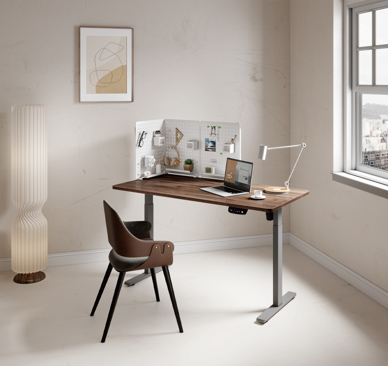 Ta tablica może stać się integralną częścią Twojego biurka. Swobodnie ustawisz ją na dwóch dołączonych nóżkach, a jeśli chcesz, możesz również zamontować ją na ścianie. Jej modułowa budowa umożliwia elastyczne łączenie z innymi elementami, co pozwala na dostosowanie jej do różnych rozmiarów biurka.