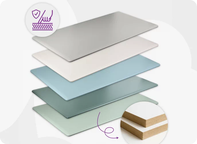 Oferujemy blaty melaminowane MDF (malowane proszkowo) w bogatej gamie kolorów, co pozwala na swobodne dopasowanie do każdego wnętrza, bez kompromisów w kwestii wytrzymałości. Dostępne są również w popularnych i praktycznych rozmiarach, co ułatwia wybór idealnego blatu: