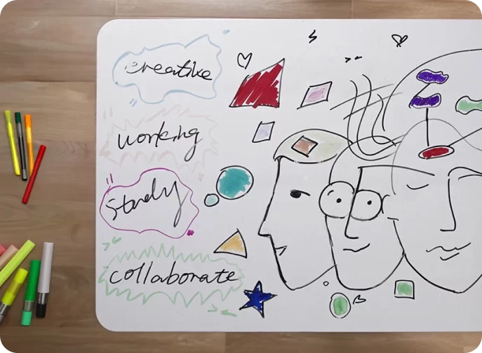 Dla grafików i projektantów: Służy jako duża, zmywalna powierzchnia do szkicowania pomysłów, tworzenia moodboardów czy prototypów koncepcji.