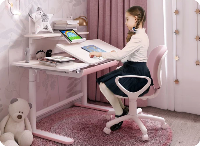 Praktyczne biurko dla uczniów to takie, które wspiera prawidłową postawę podczas odrabiania lekcji, rysowania czy pracy przy komputerze. Regulowany blat umożliwia dostosowanie wysokości do wzrostu młodego użytkownika, a opcja pochylania powierzchni roboczej odciąża kark i nadgarstki. Zaokrąglone krawędzie chronią przed otarciami, a solidna rama gwarantuje stabilność nawet przy intensywnym użytkowaniu. Dzięki temu każdy dzień spędzony przy biurku staje się przyjemniejszy, a dziecko może skupić się na nauce i zabawie bez dyskomfortu.