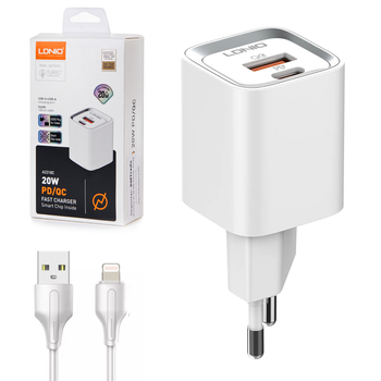Ładowarka sieciowa USB 20W PD QC 3.0 + kabel USB-A / USB-C Szybkie Ładowanie LDNIO A2318C