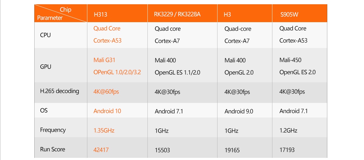 - Procesor: Allwinner H313 Quad Core ARM Cortex A53