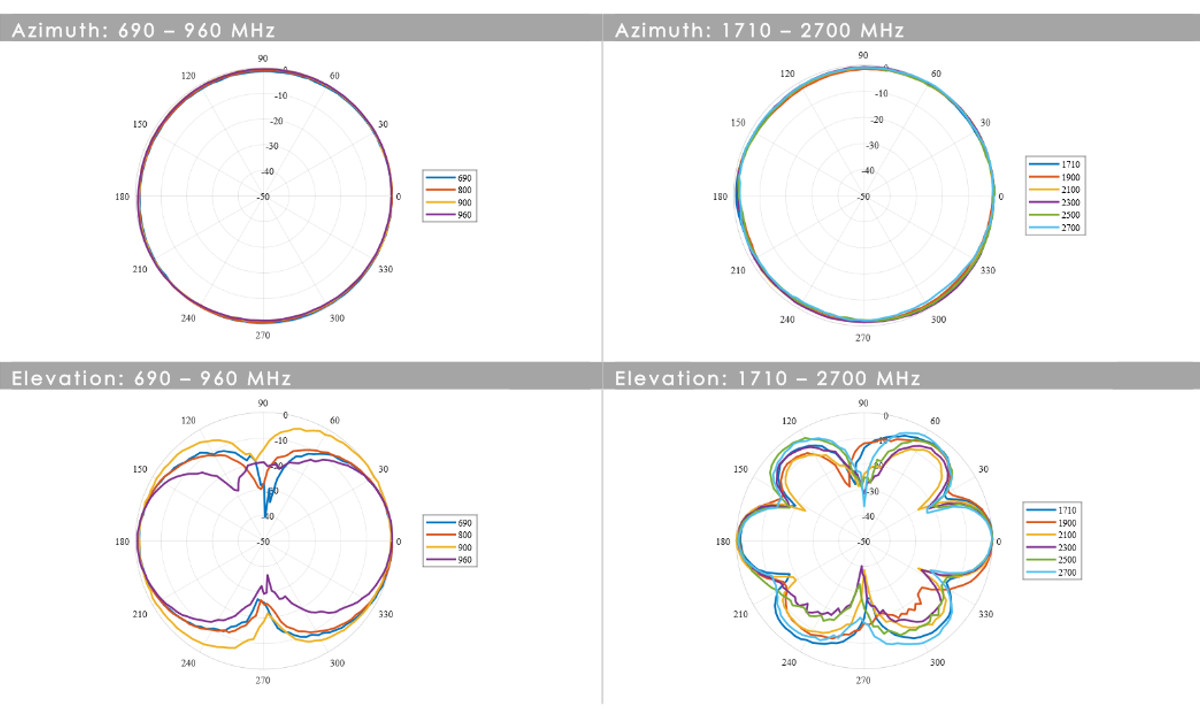 - Szerokopasmowe zakresy częstotliwości od 690–2700 MHz