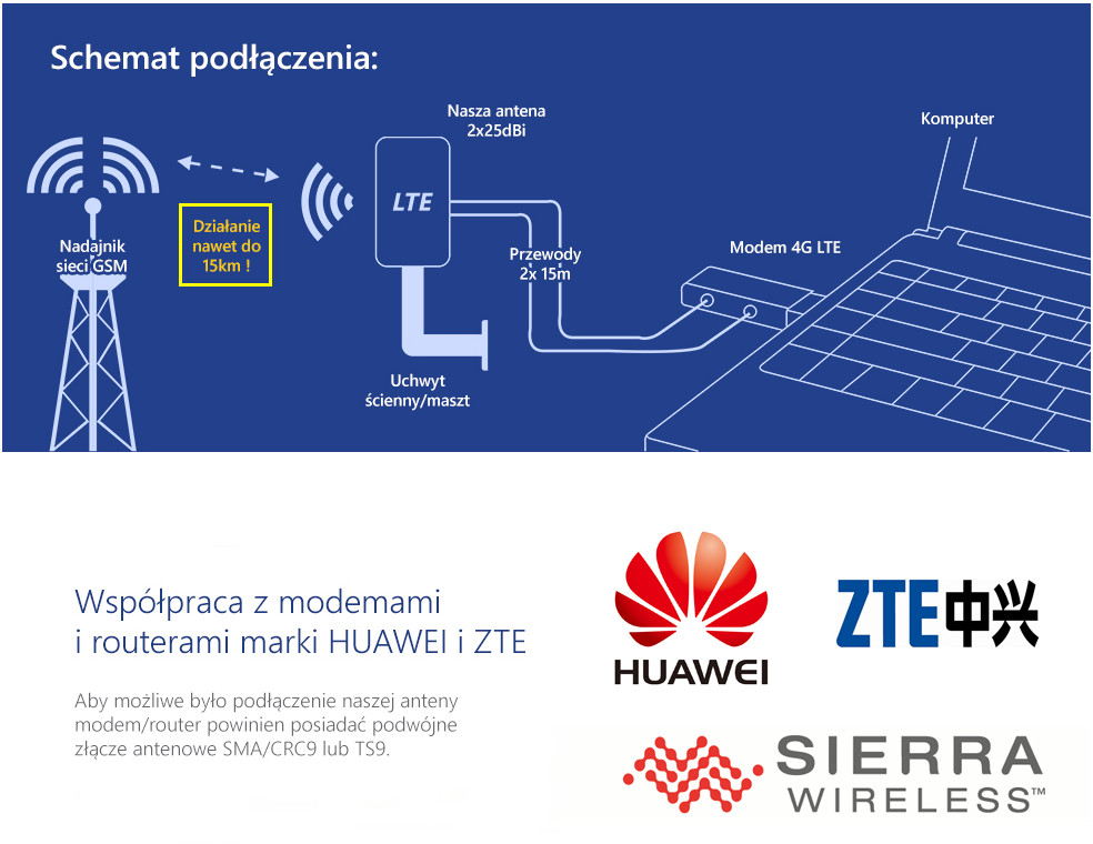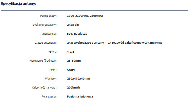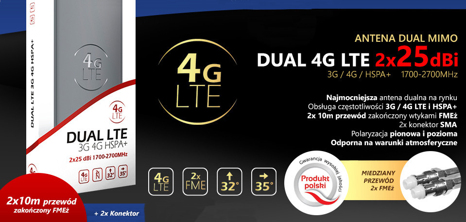 Antena Panelowa MIMO 3G/4G LTE 2x25dBi + przewody