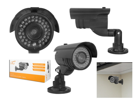 Profesjonalna atrapa kamery, której nie sposób odróżnić od prawdziwej kamery monitoringu. Atrapa wyposażona została w czerwoną diodę LED nagrywania, imitację diod IR oraz bardzo realistyczną atrapę obiektywu. Realizm tego urządzenia powoduje, że ma się wrażenie kontaktu z profesjonalnym sprzętem monitoringu. Wykonanie tego urządzenia cechuje się najwyższą jakością użytych materiałów, dbałością o szczegóły oraz starannością i precyzją wykonania. Zainstalowana na wysokości 2 metrów, powoduje, że nie można odróżnić jej od prawdziwej kamery, a migająca dioda LED nadaje realizmu i autentyczności funkcjonowania. Rozmiar i estetyczne wykonanie sprawiają, iż kamera nadaje się doskonale jako atrapa kamery zewnętrznej, do zastosowania zarówno w przemyśle, jak i dla prywatnych użytkowników w domu. Regulowany uchwyt umożliwia dogodne ustawienie kąta kamery, aby nadać jej jeszcze większego realizmu. Atrapa kamery do złudzenia przypomina prawdziwe, profesjonalne urządzenie do monitoringu. Przy standardowym montażu, niesamowicie trudno odróżnić ją od prawdziwej kamery a migająca dioda oraz możliwość precyzyjnego ustawienia kąta, gwarantują skuteczne odstraszenie i zniechęcenie każdego intruza.