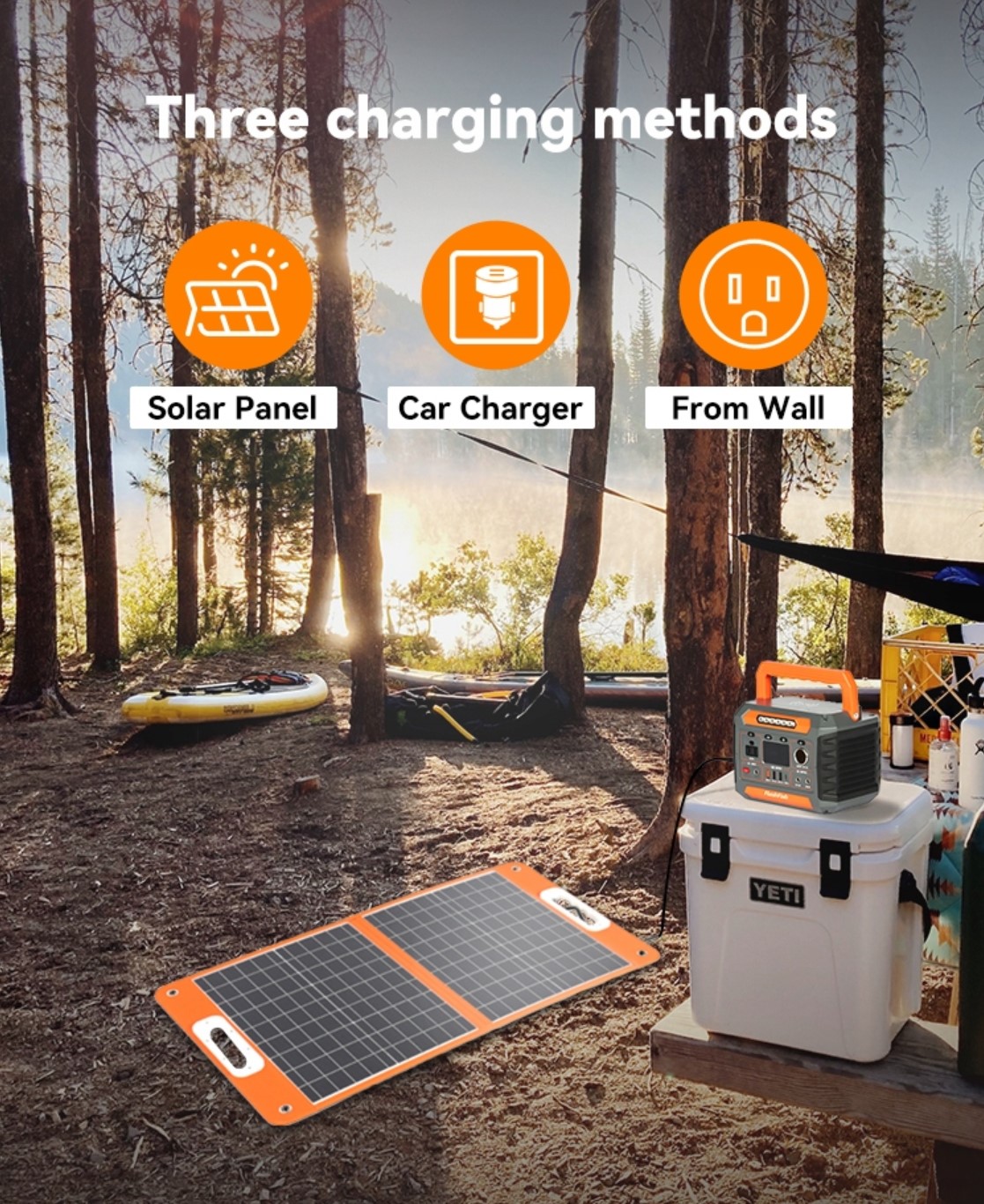 Zaawansowana technologia MPPT zapewnia szybsze ładowanie, dzięki czemu ładowanie za pomocą paneli słonecznych jest szybsze i bezpieczniejsze, przy wyższym współczynniku kompatybilności. Generator słoneczny można również ładować z gniazdka samochodowego 12V/24V lub gniazdka ściennego. Umożliwia to łatwe naładowanie urządzenia w dowolnym momencie. Ponadto zintegrowany kontroler MPPT automatycznie optymalizuje proces ładowania i maksymalizuje pobór prądu z paneli słonecznych w każdych warunkach.