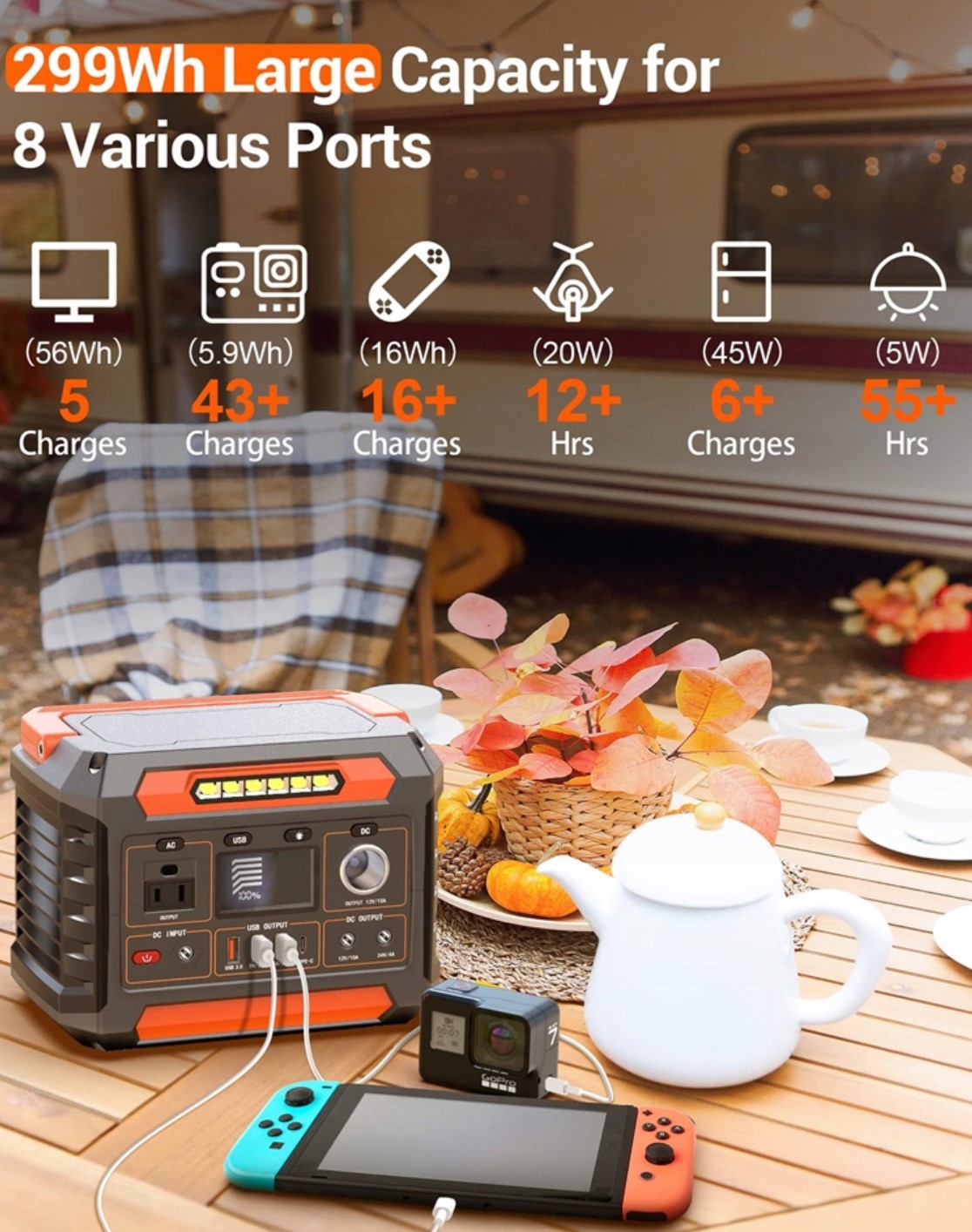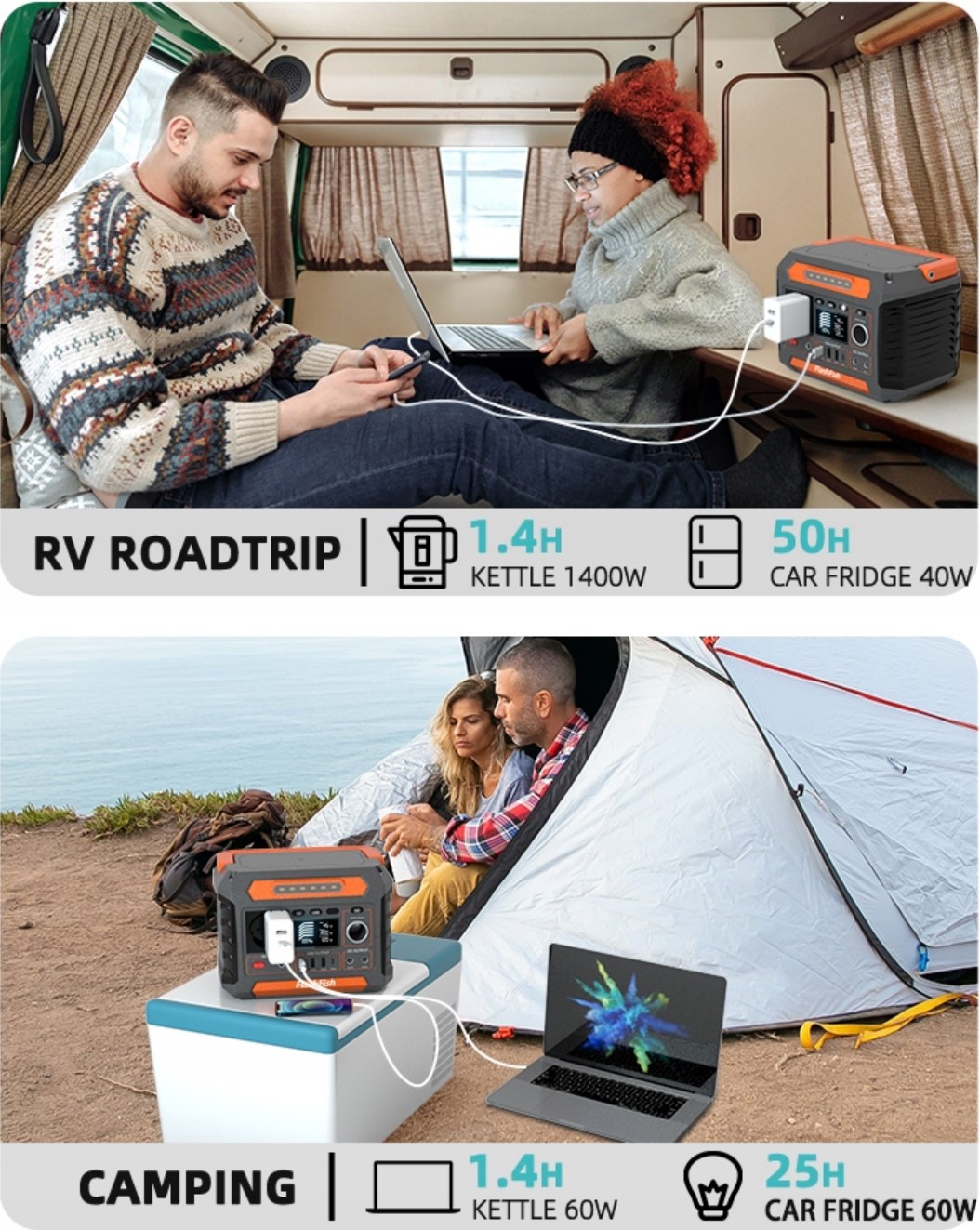 Kompaktowa stacja 288 Wh jest wystarczająco mocna, aby zaspokoić różne rodzaje zapotrzebowania na energię elektryczną do użytku na zewnątrz w domu, w podróży, na kempingu, na tylnym siedzeniu podczas długich podróży. Dzięki miękkiemu uchwytowi możemy zabrać ją wszędzie, gdzie potrzebujesz prądu.